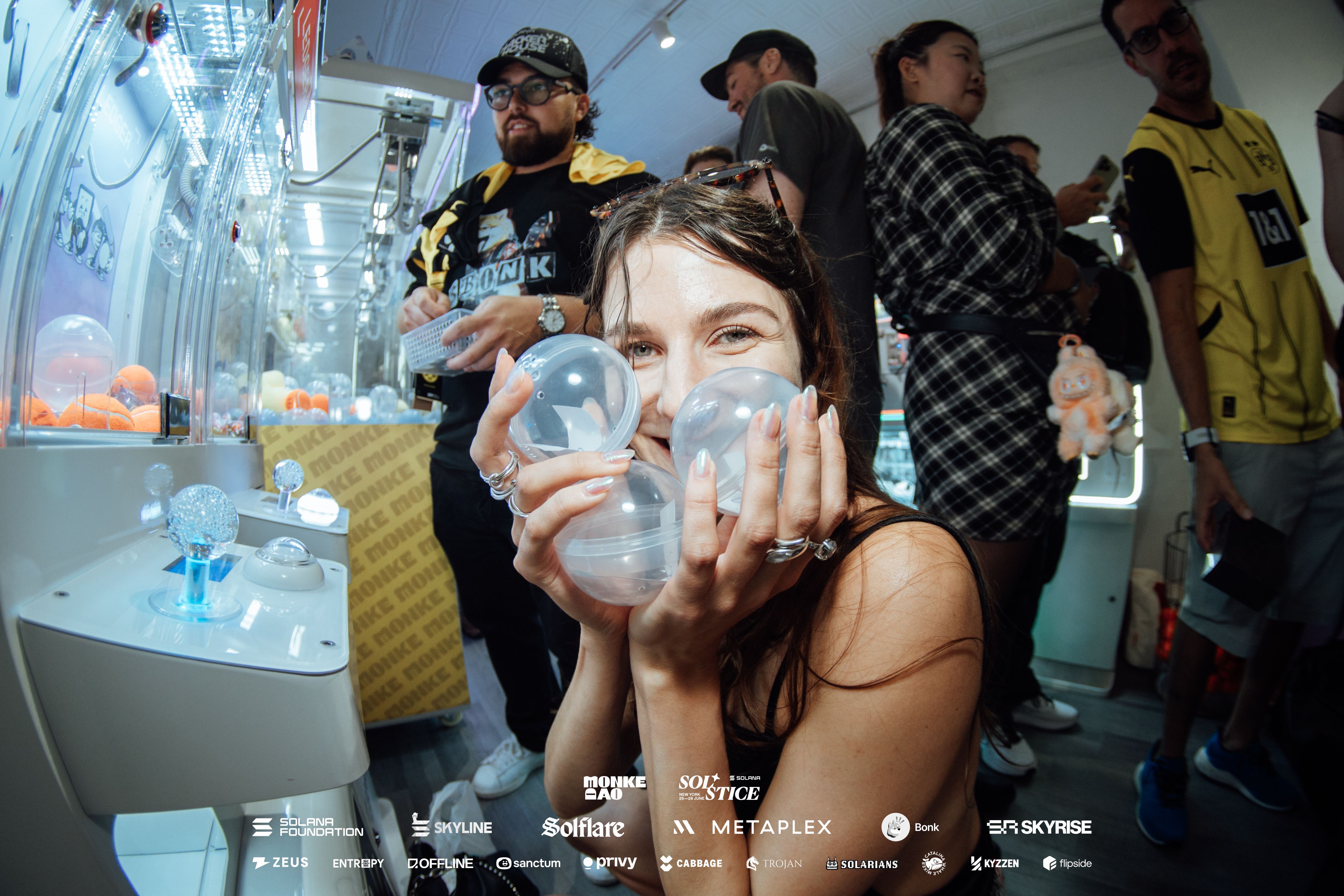 In June, we returned to New York for Solana Solstice, joining forces with our buddies at MonkeDAO. Together, we took over the iconic New York Claw Machine Store, both virtually and in real life, for an evening of retro fun, exclusive prizes, and fundraising.